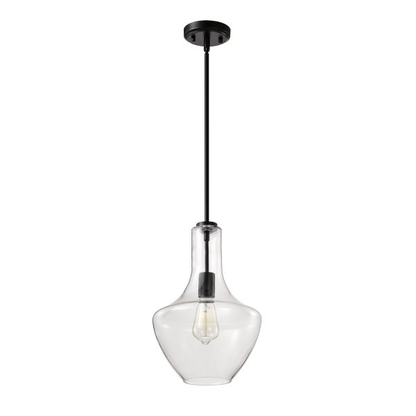 Elevate your space with our timeless 1-light pendant, boasting a sleek curvilinear silhouette crafted from durable metal. Its clear handblown glass shade ensures exceptional clarity, allowing ample light to illuminate any room from the single medium base bulb within. Finished in matte black for a minimalist aesthetic, this pendant includes three 12-inch and one 6-inch rods for customizable hanging heights, making it perfect for enhancing your kitchen island, dining area, or bar with a blend of contemporary elegance and classic charm.