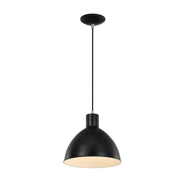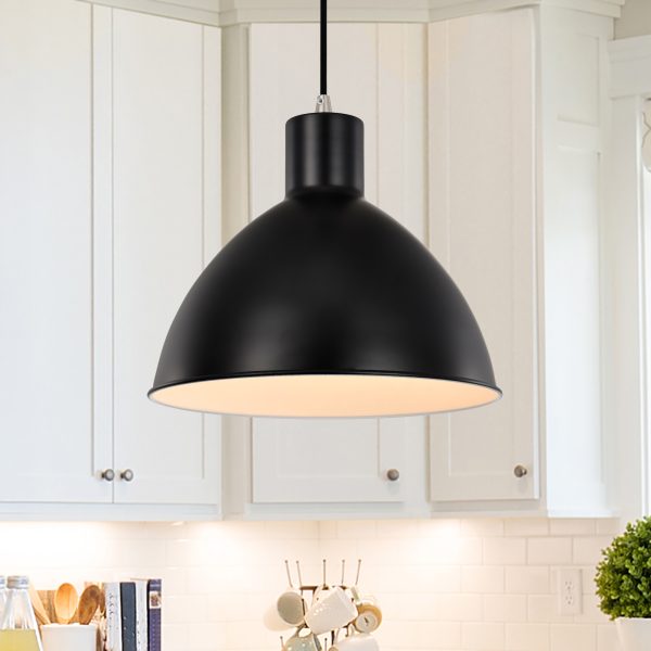 Give your kitchen a modern update with this 1-light pendant. The matte black finish is beautifully complemented by the subtle brushed nickel hardware accents to create a contemporary look. The bowl-shaped metal shade houses a medium base bulb (not included) perfect for illuminating spaces such as the kitchen or breakfast nook. The hanging cord is 70 inches and adjustable to suit a variety of ceiling heights while creating a sleek appearance. We recommend adding a dimmer switch with dimmable bulbs for further customization.