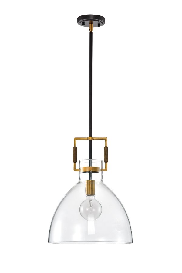 - Oil Rubbed Bronze and Antique Gold pendant light with clear glass shade.
