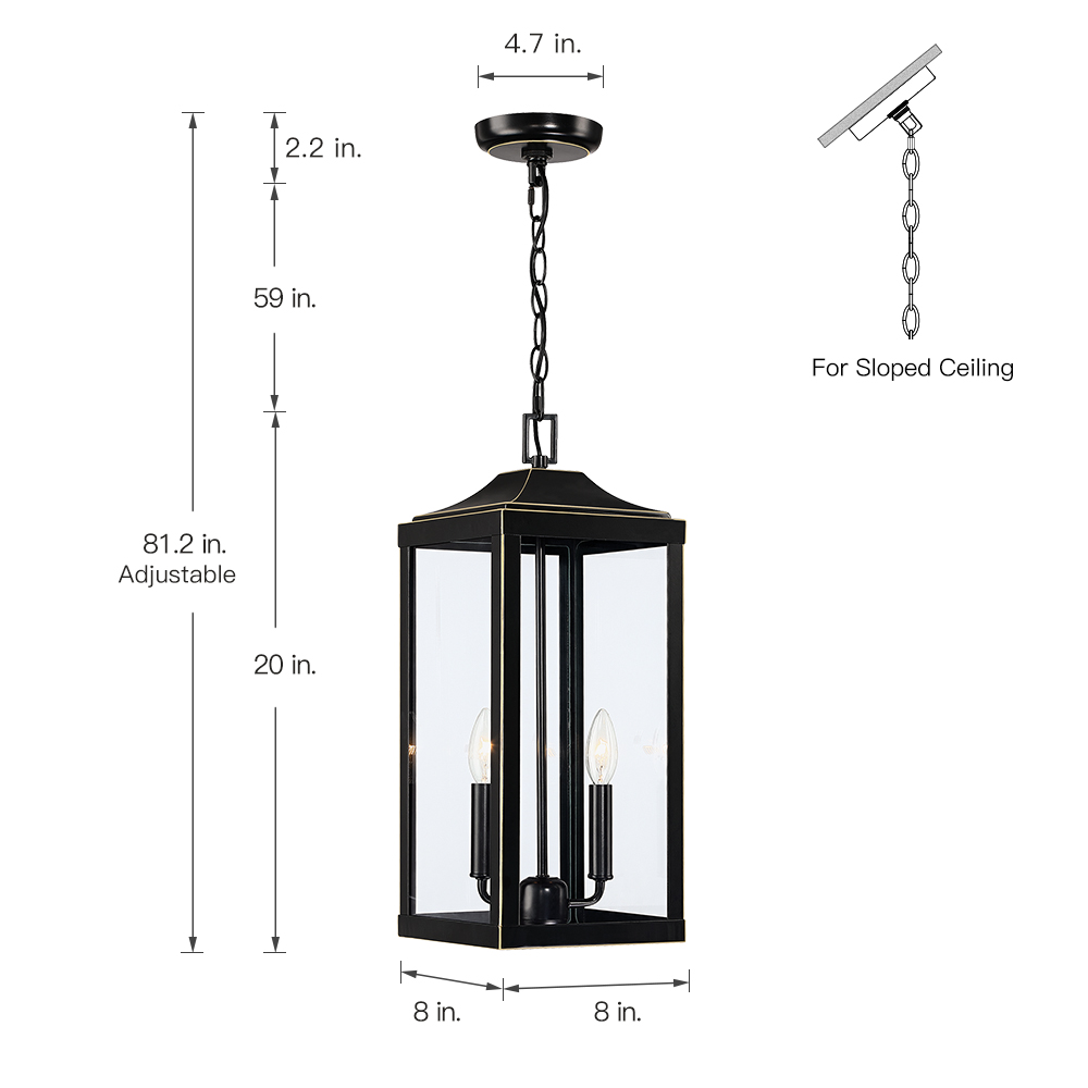 - Fixture dimensions: 8 in. W x 25.7 in. H x 81.2 in. max hanging height, minimum hanging height is 24 in.