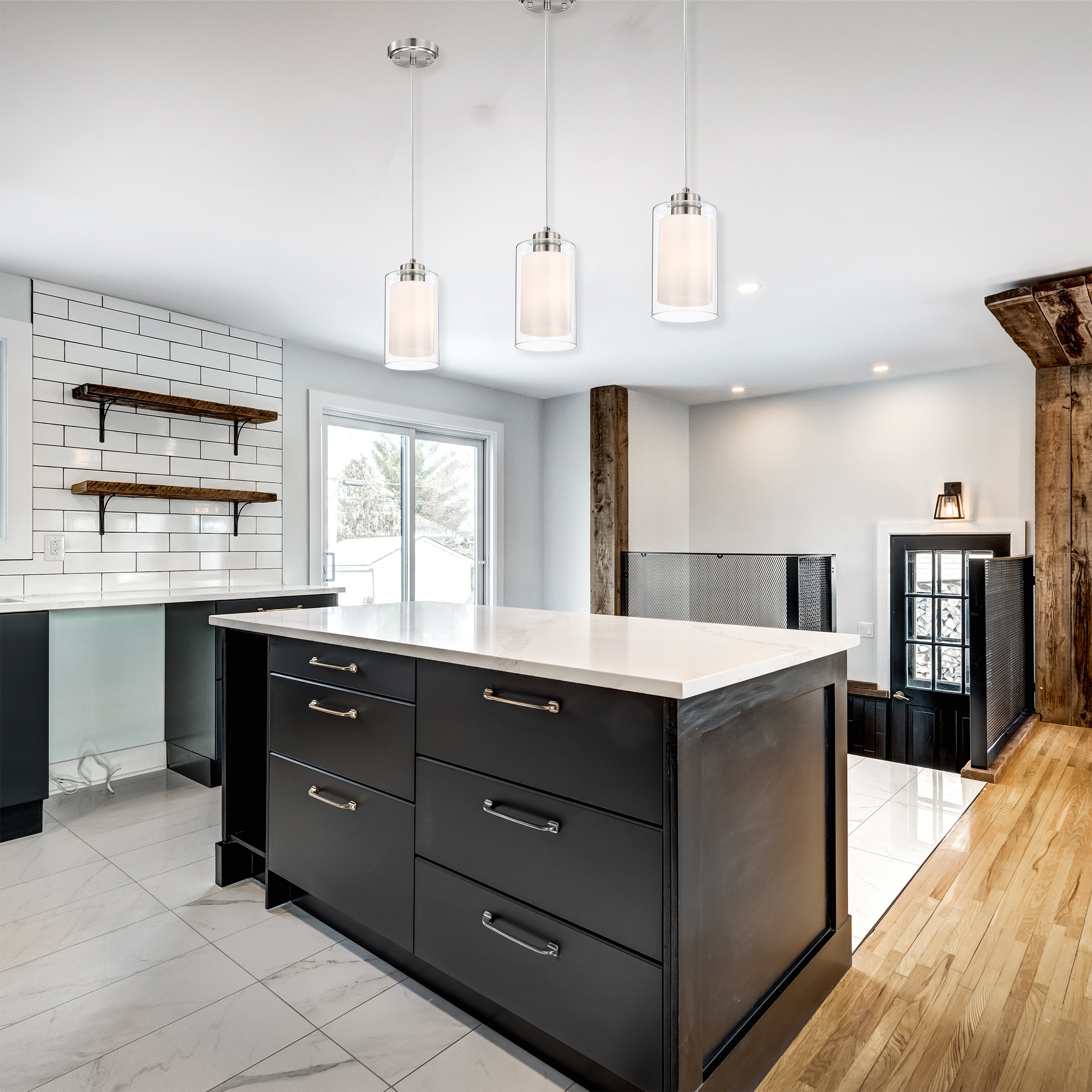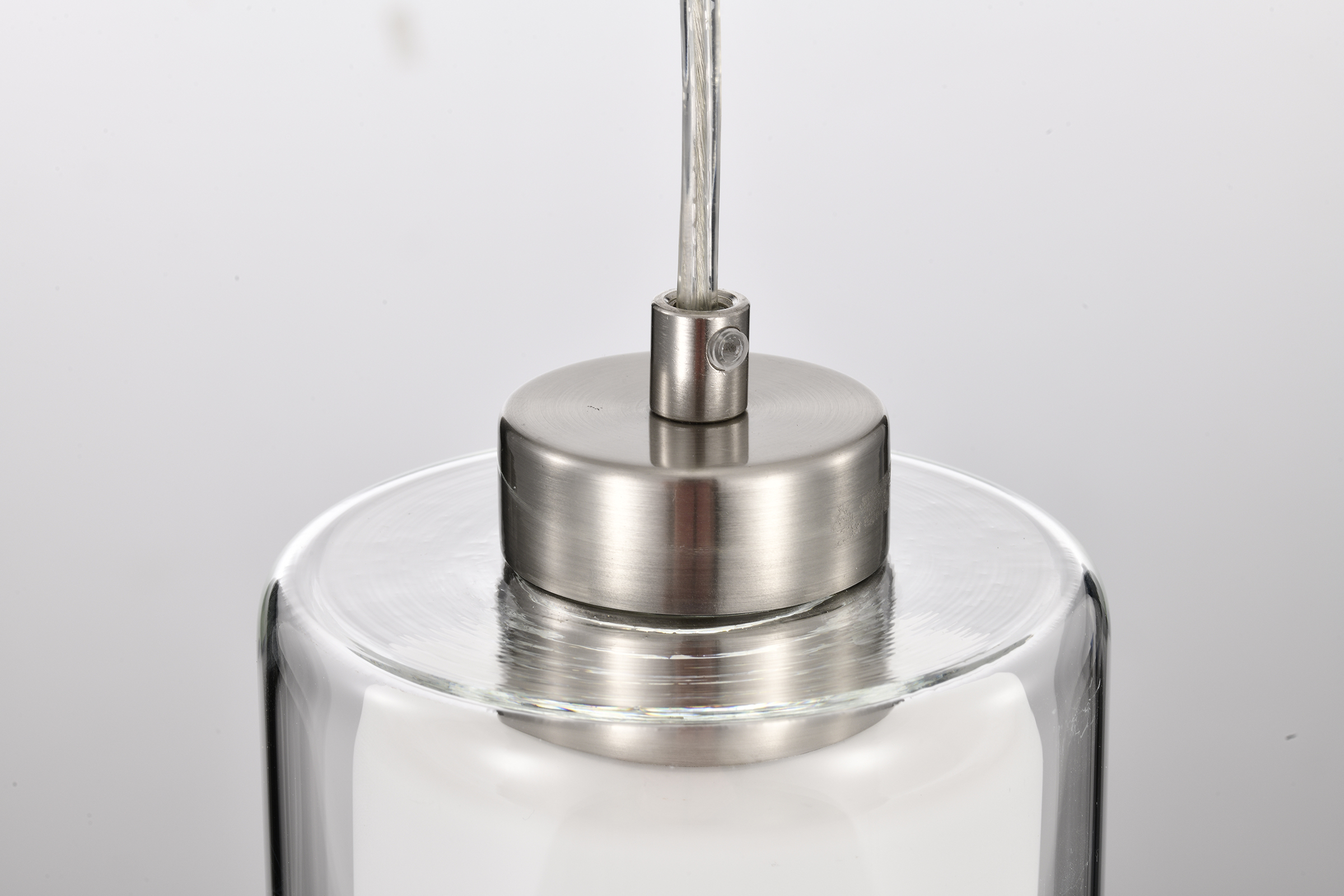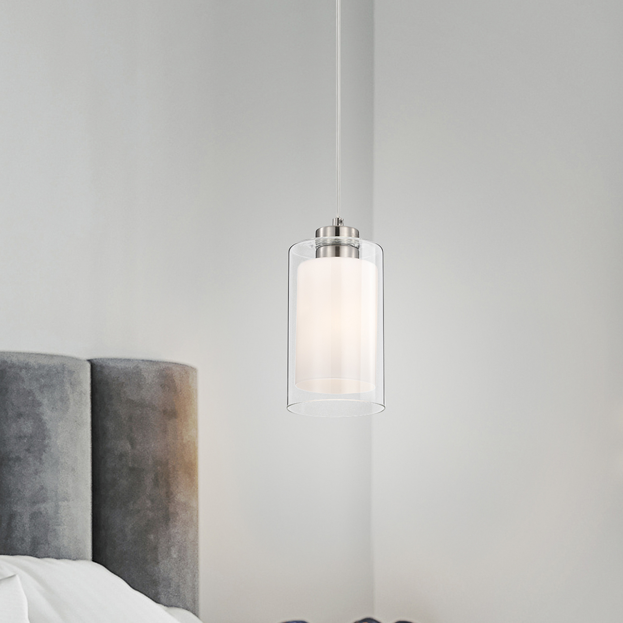 The avenue 1 light mini pendant casts a warm glow in your space with its dual glass shade. This elegant design features an etched glass shade encased in a clear glass shade that diffuses light. The brushed nickel finish of this mini pendant light makes it perfect for hanging above the kitchen island, breakfast table, bedroom, or office. For ease of installation, this pendant light comes with 70 inch cord that may be adjusted to suit different ceiling heights and room sizes. Dimmable when added with a wall dimmer switch and dimmable bulbs.