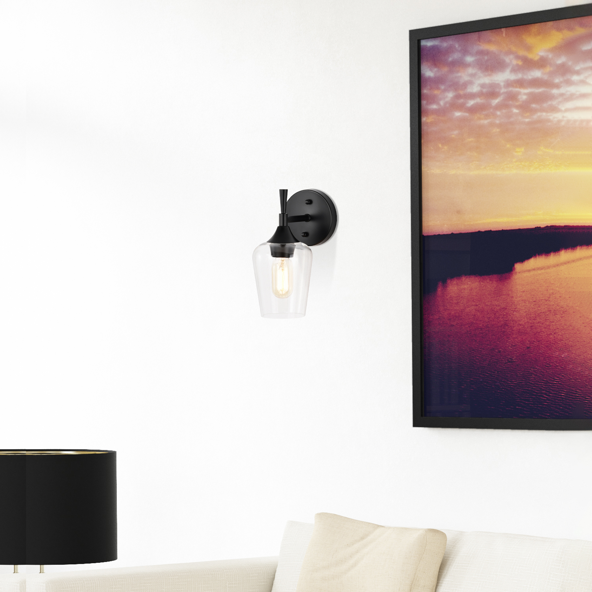 Kathryn 1-Light Matte Black Indoor Wall Sconce with Clear Glass Shade