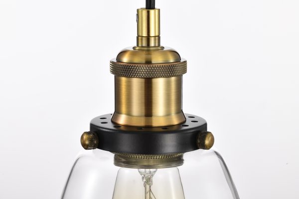 Mateo 1-Light Black and Antique Brass Mini Pendant Light with Clear Glass Shade