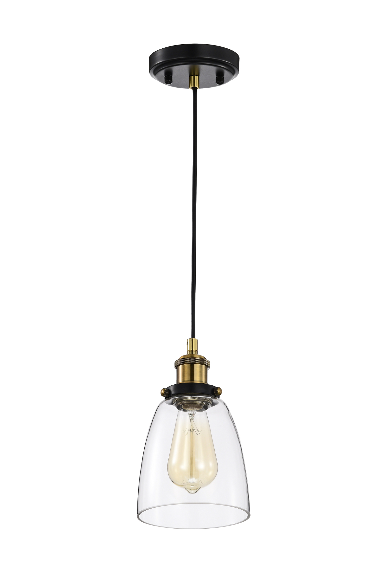 The Mateo 1-Light mini pendant is a great addition to any home that needs a lighting update with a modern touch. Featuring a black and antique brass finish, this industrial pendant light allows ample illumination to shine through the clear glass shade. This versatile pendant light works great on its own, in pairs, or in multiples over a kitchen island, breakfast bar, or dining room.